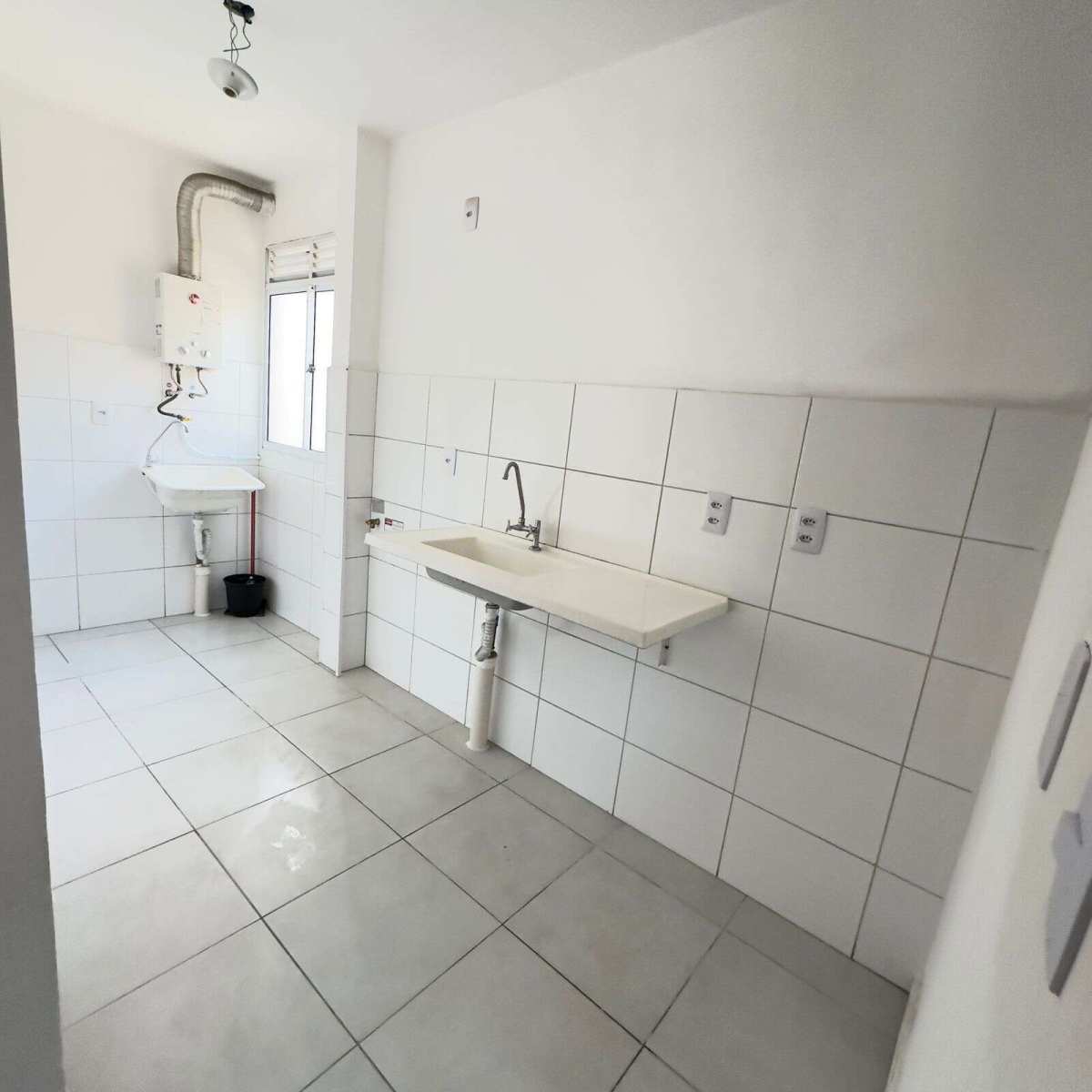 2 quartos, 1 Sala, 1 Cozinha / área de serviço e 1 banheiro com janela basculante para ventilação direta.